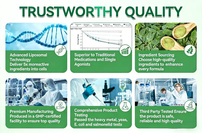 Benefits: Supports effective weight reduction and appetite regulation, stabilizes blood glucose levels, promotes cardiovascular health, reduces chronic low-grade inflammation, and helps alleviate metabolism-related fatigue.