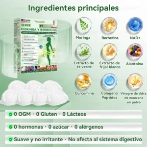 La moringa y la berberina ralentizan la absorción de carbohidratos, reducen los picos de azúcar en sangre después de las comidas y optimizan el almacenamiento de glucógeno hepático y la eficiencia del metabolismo de las grasas. Con el uso continuo, los participantes experimentaron reducciones significativas de la glucemia en ayunas y la HbA1c, una mejor utilización de la energÃa y curvas de glucemia más estables a lo largo del dÃa. La respuesta a la insulina mejoró notablemente, la tasa metabólica aumentó y los efectos sinérgicos del compuesto resultaron en picos de azúcar en sangre más bajos, un control más preciso de la glucemia, una recuperación más rápida y, en general, más.