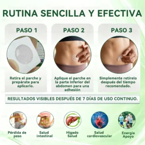 â  Absorción transdérmica eficiente:  El parche utiliza tecnologÃa de absorción transdérmica, lo que permite que los ingredientes activos eviten el sistema gastrointestinal y entren en la microcirculación a través de la piel para ejercer su efecto. Este método es más suave para el estómago y los intestinos, lo que lo hace especialmente adecuado para personas con sistemas digestivos sensibles.