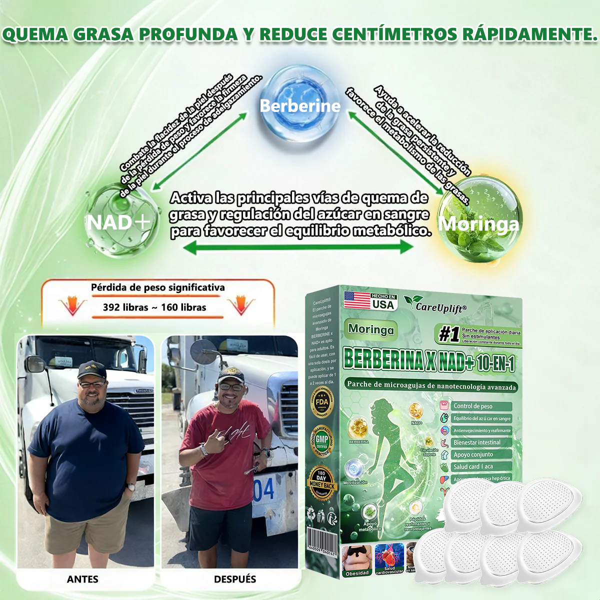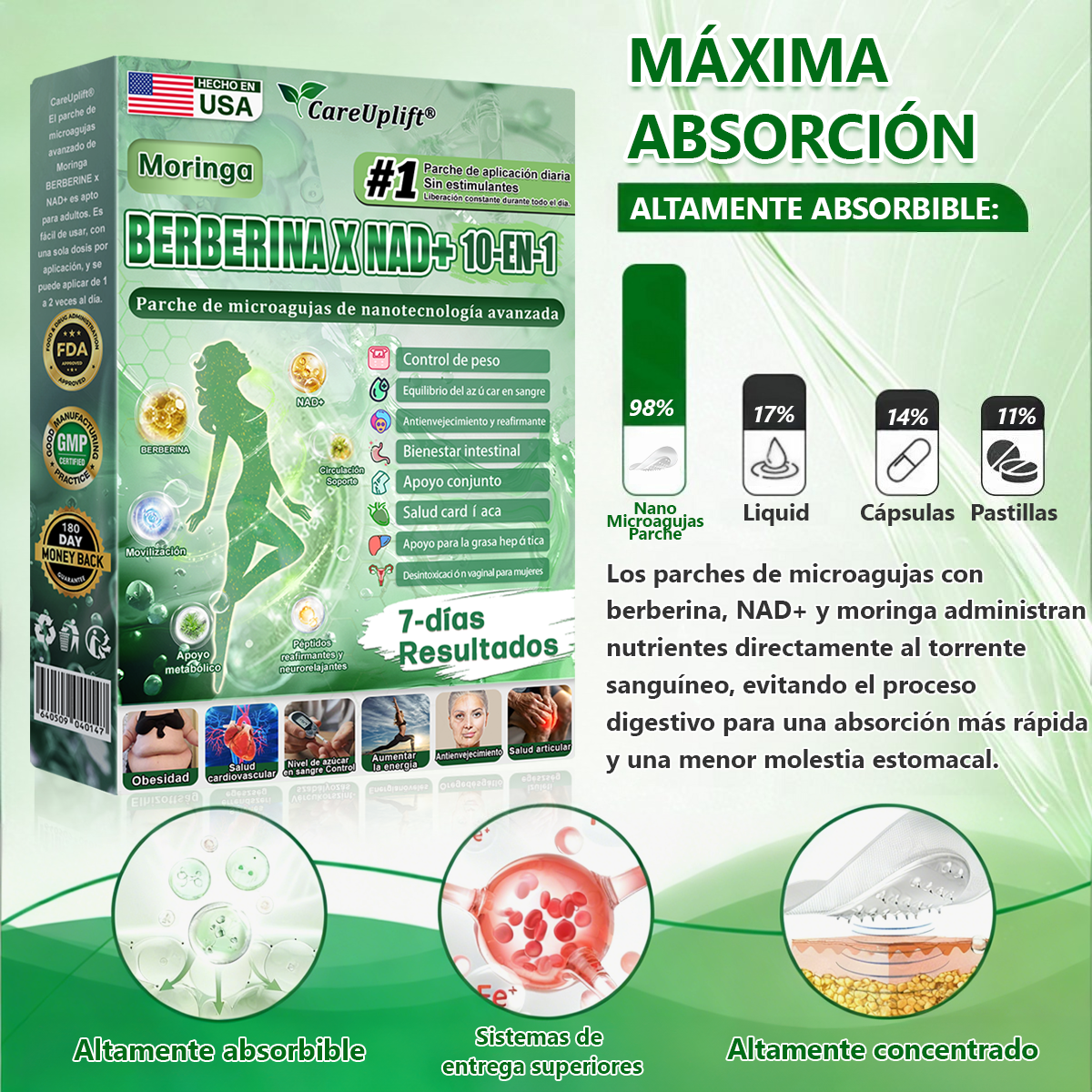 🇺🇸 Tienda Oficial | Moringa · Berberina × NAD+ 10-en-1 Advanced Nano Microneedle Patch