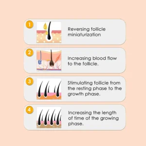 This plant oil-based hair serum contains 5% minoxidil, a dermatologist-approved liquid medication that treats a variety of hair loss-related problems. Whether it’s for pattern baldness and receding hairline in men or excessive hair fall out and thinning in women, minoxidil treats the root cause by increasing blood flow around hair follicles. This stimulates follicle movement and enhances hair growth.