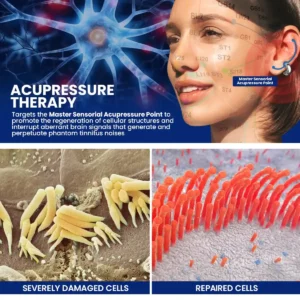 Effective Acupoint Therapy: Targets the Master Sensorial Acupressure Point to promote the harmonization of cellular structures and interrupt aberrant brain signals responsible for generating and sustaining phantom tinnitus noises. This approach offers long-term relief from persistent ringing or buzzing in the ears.
