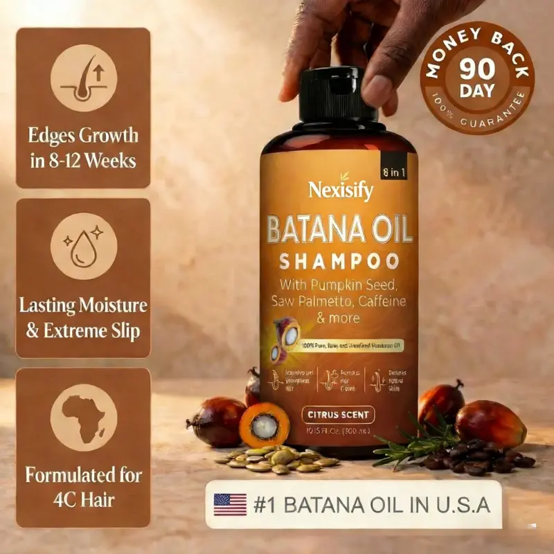 Raw Batana Oil, traditionally harvested by the Miskito, nourishes follicles for thick, strong, rooted hair and supports fast growth, making it safe for 100% daily use. Unlike mass-produced products filled with sulfates and industrial detergents that strip away natural protection, cause thin, brittle strands, falling hair, clogged pores, and scalp itch, Batana Oil keeps your hair and scalp healthy, protected, and naturally vibrant.