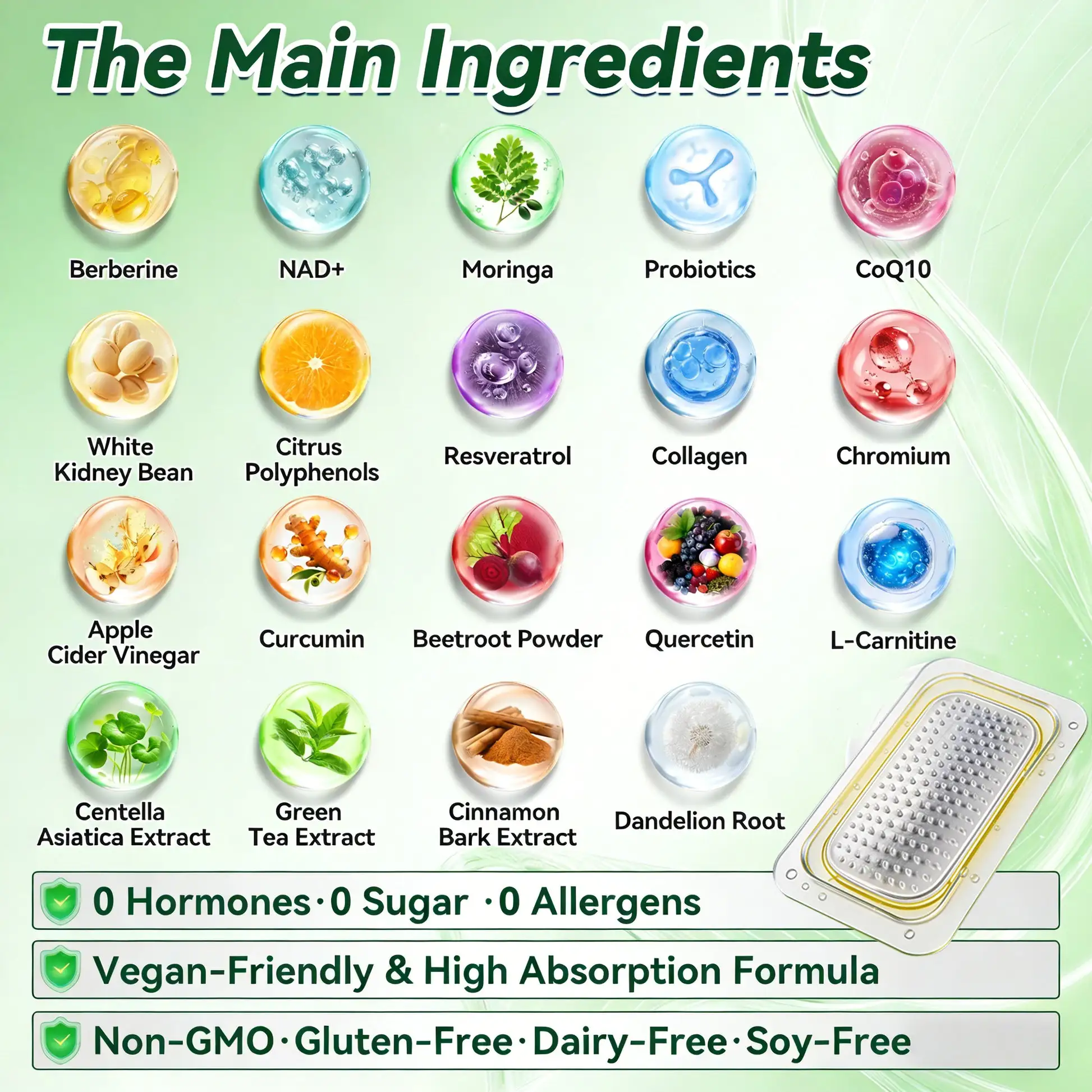 Berberine · Horse Chestnut × NAD+ 10-in-1 Advanced Nano Microneedle Patch