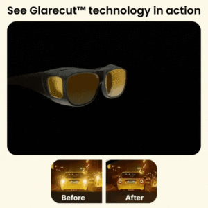 Headlight Glasses have orange lenses, which completely cut down the glare of oncoming headlights, because of “GlareCut” Technology.