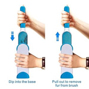 The double-sided design removes lint and fluff twice as easily and faster than other fluff brushes. After vacuuming cloth fabric surfaces, dip the self-cleaning base to thoroughly clean fur and lint, no extra scrubbing required.
