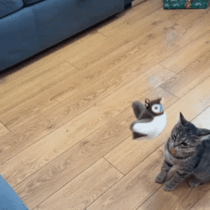 **Note: While it flaps realistically, it stays on the ground for your cat to catch (it doesn’t fly away!).**