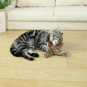 Give your feline friend hours of fun with our interactive bird! This toy emits realistic chirping sounds when touched, attracting your cat’s attention and stimulating their natural predatory instincts. Made of soft plush, it’s safe and irresistible for your kitty!
