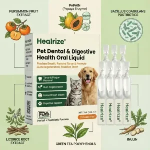 “As a practicing veterinarian specializing in pet dentistry in the United States, I have observed in clinical practice that Healrize Oral Solution has a significant effect on improving pets’ plaque and gum problems. Meanwhile, its herbal + probiotic formula can gently aid digestion and balance the gut flora of pets, blocking plaque and gum issues at the source. I recommend pet owners use it as a daily oral care supplement.”— Dr. Elara Voss (Board-Certified Veterinary Dentist in the U.S., 12 years of experience, specializing in companion animal oral health management)