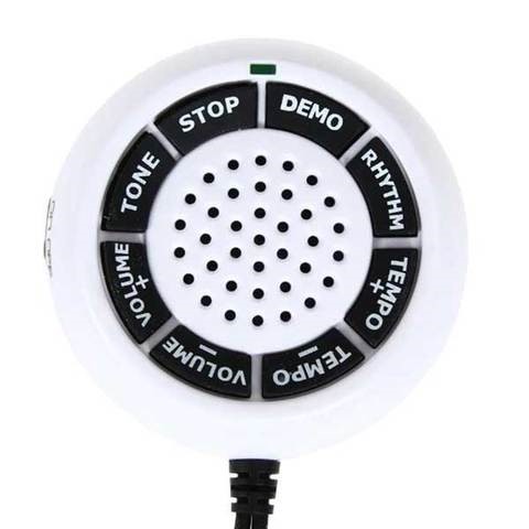 8 different musical instrument tones such as piano, bass, violin, guitar, trumpet, drums, xylophone, jukebox.