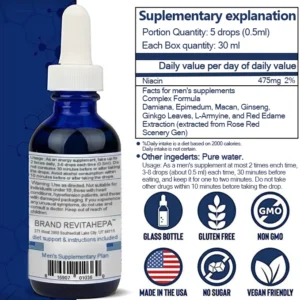 Package Includes: 1 x REVITAHEPA Male Growth Nutrition Drops