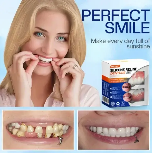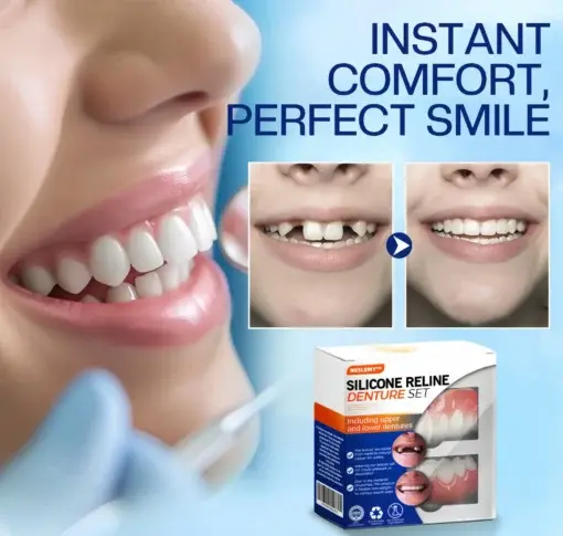- Customizable Fit: Tailor-made silicone reline adjusts perfectly to your dentures.