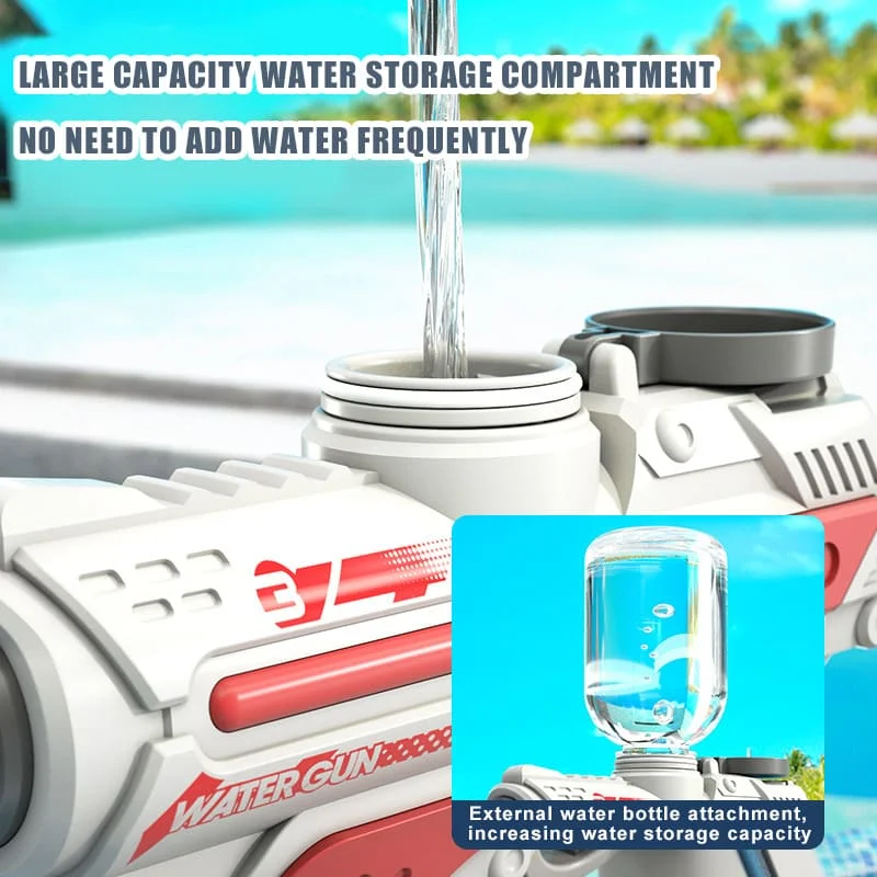 The electric water gun has been upgraded with a powerful motor for rapid shooting, offering an impressive shooting range of up to 10 meters. No matter where your opponents are, you can easily soak them within the range.