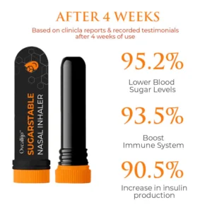The natural ingredients in the Oveallgo™ SugarStable Nasal Inhaler work to improve insulin sensitivity, a condition where the body is less responsive to insulin. This hormone helps regulate blood sugar levels, and people with diabetes often have insulin resistance. By improving insulin sensitivity, the inhaler helps the body use insulin more effectively, leading to better blood sugar control.