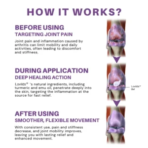 “My name is Catherine, and I’m 56 years old. After retiring, I’ve loved spending time in my garden and enjoying family activities. However, as I got older, I began suffering from severe neck and back pain, particularly after sitting for long periods or bending over. It started to really impact my quality of life. After some tests, my doctor diagnosed me with osteoarthritis of the spine and degenerative disc disease. I tried physical therapy and medications, but nothing seemed to work. A few weeks ago, my doctor recommended LOVILDS™ Turmeric & Emu Oil Arthritis Soothing Pain Relief Massage Gel. Honestly, I wasn’t sure if it would work, but after just a few days, I noticed a huge improvement. My neck was less stiff, the back pain decreased, and I felt more mobile. Now, I can work in my garden and enjoy walks with my grandkids without pain. I highly recommend this product—it’s been a game-changer for me! I’m so grateful to my doctor for the recommendation. It’s given me back my freedom and energy!” – Catherine